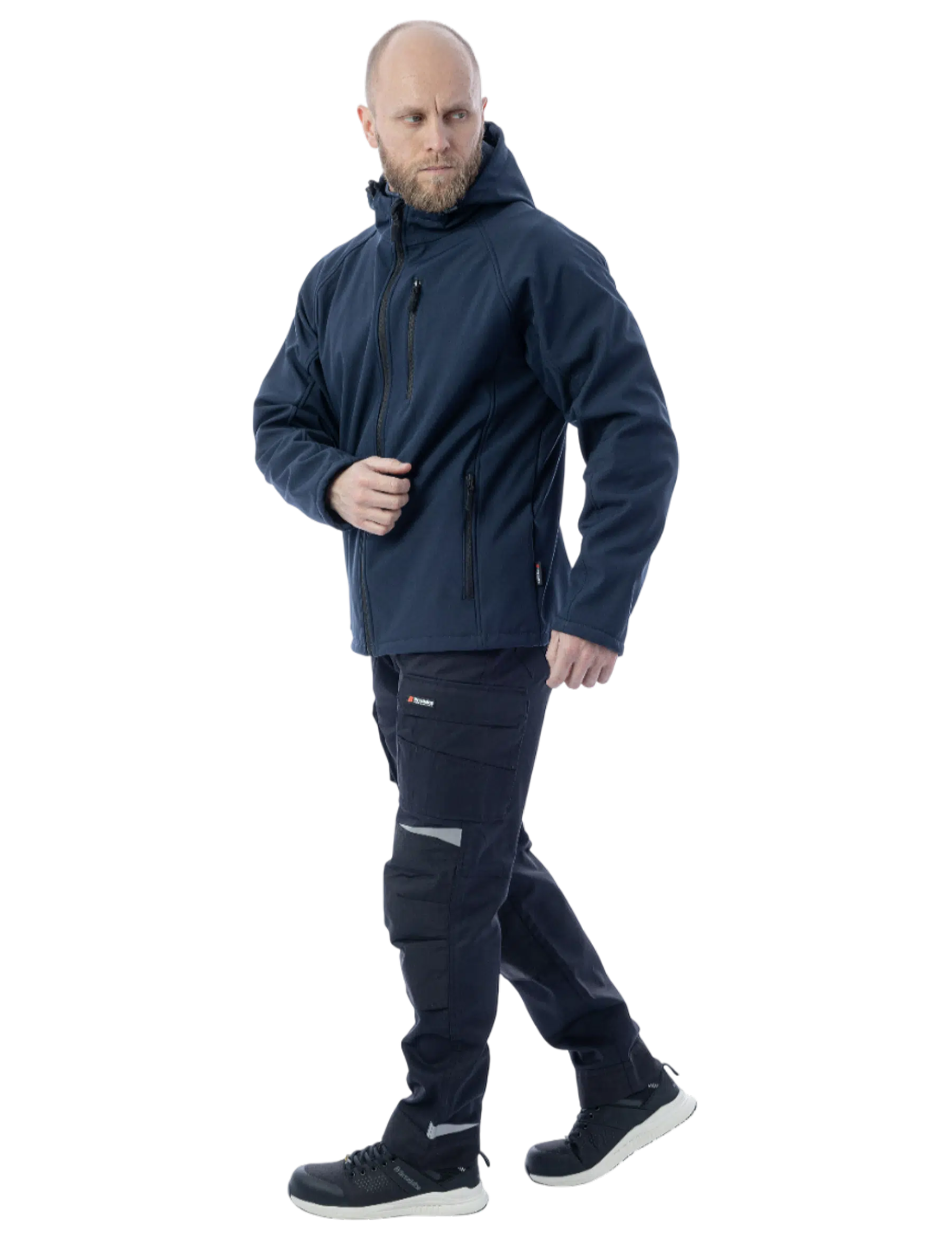 Куртка софтшелл — универсальная модель для работы и города. Лёгкий материал с мембраной 8000/3000 защищает от ветра и дождя, обеспечивает комфортный микроклимат. Слегка эластичная ткань и прямой крой не стесняют движений, флисовая подкладка сохраняет тепло. Трикотажные манжеты и капюшон с утяжками дополнительно защищают от холода. Модель отлично подходит для стройки, мастерской и повседневного использования в межсезонье и прохладное лето. Оснащена тремя карманами на молниях.