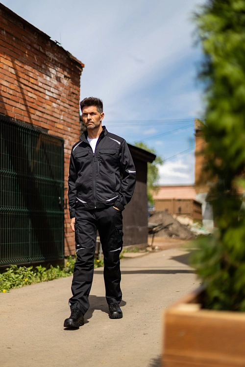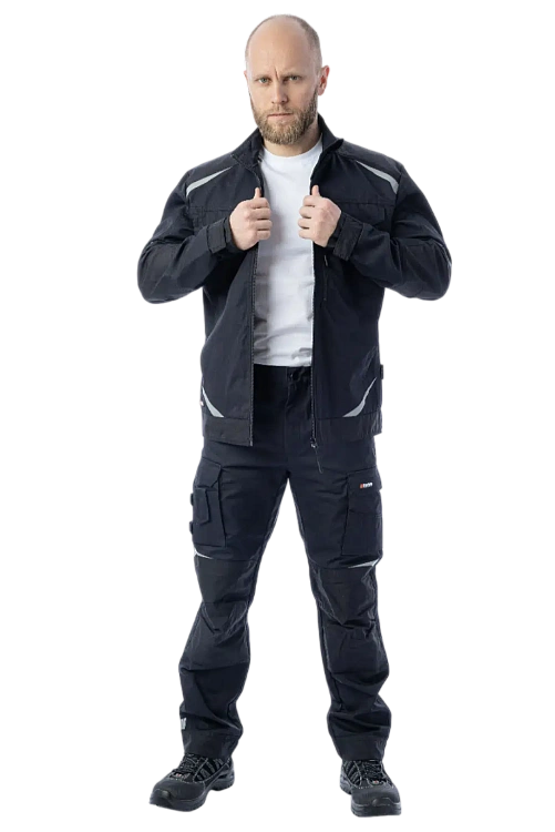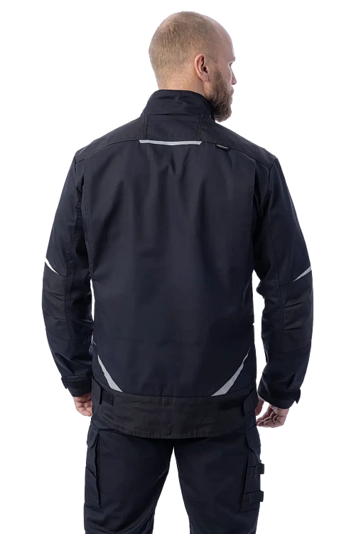 Куртка выполнена с полуприталенной посадкой и аккуратными отделочными строчками, что подчёркивает профессиональный стиль. Складки в области лопаток обеспечивают свободу движений, а вентиляция в подмышках и удлинённая спинка повышают комфорт при активной работе. Семь карманов, внутренний карман для документов формата А4, светоотражающие элементы и карабин для ID-карты делают модель практичной в ежедневной эксплуатации. Локти, манжеты и низ куртки укреплены Forcedura, что увеличивает срок службы изделия.