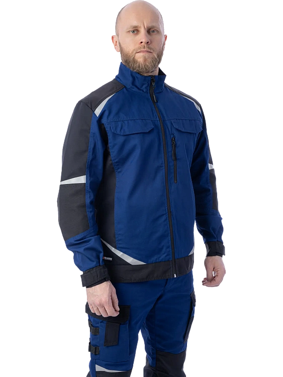 Куртка выполнена с полуприталенной посадкой и аккуратными отделочными строчками, что подчёркивает профессиональный стиль. Складки в области лопаток обеспечивают свободу движений, а вентиляция в подмышках и удлинённая спинка повышают комфорт при активной работе. Семь карманов, внутренний карман для документов формата А4, светоотражающие элементы и карабин для ID-карты делают модель практичной в ежедневной эксплуатации. Локти, манжеты и низ куртки укреплены Forcedura, что увеличивает срок службы изделия.