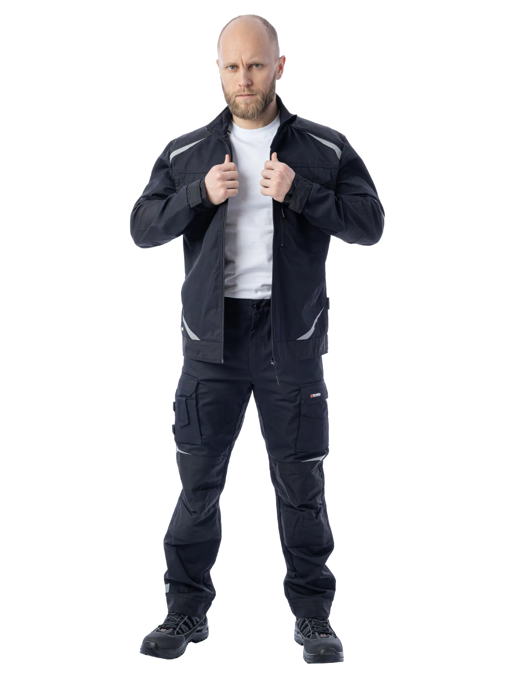Летняя куртка для специалистов, ИТР и руководителей. Модель сочетает в себе надёжность, комфорт и современный внешний вид. Полуприталенный крой и аккуратные отделочные строчки подчёркивают профессиональный стиль, а усиления из прочной ткани в зонах износа — на локтях, манжетах и по низу — увеличивают срок службы изделия. Основной материал Workshell с хлопком обеспечивает комфорт в течение всего дня и защиту от загрязнений. Складки в области лопаток обеспечивают свободу движений, а вентиляция в подмышках и удлинённая спинка повышают комфорт при активной работе. Семь карманов, включая внутренний для документов формата А4, а также светоотражающие элементы и карабин для ID-карты делают куртку практичным выбором для повседневной работы. Идеальна для производственных задач, где важны функциональность, удобство и аккуратный внешний вид.