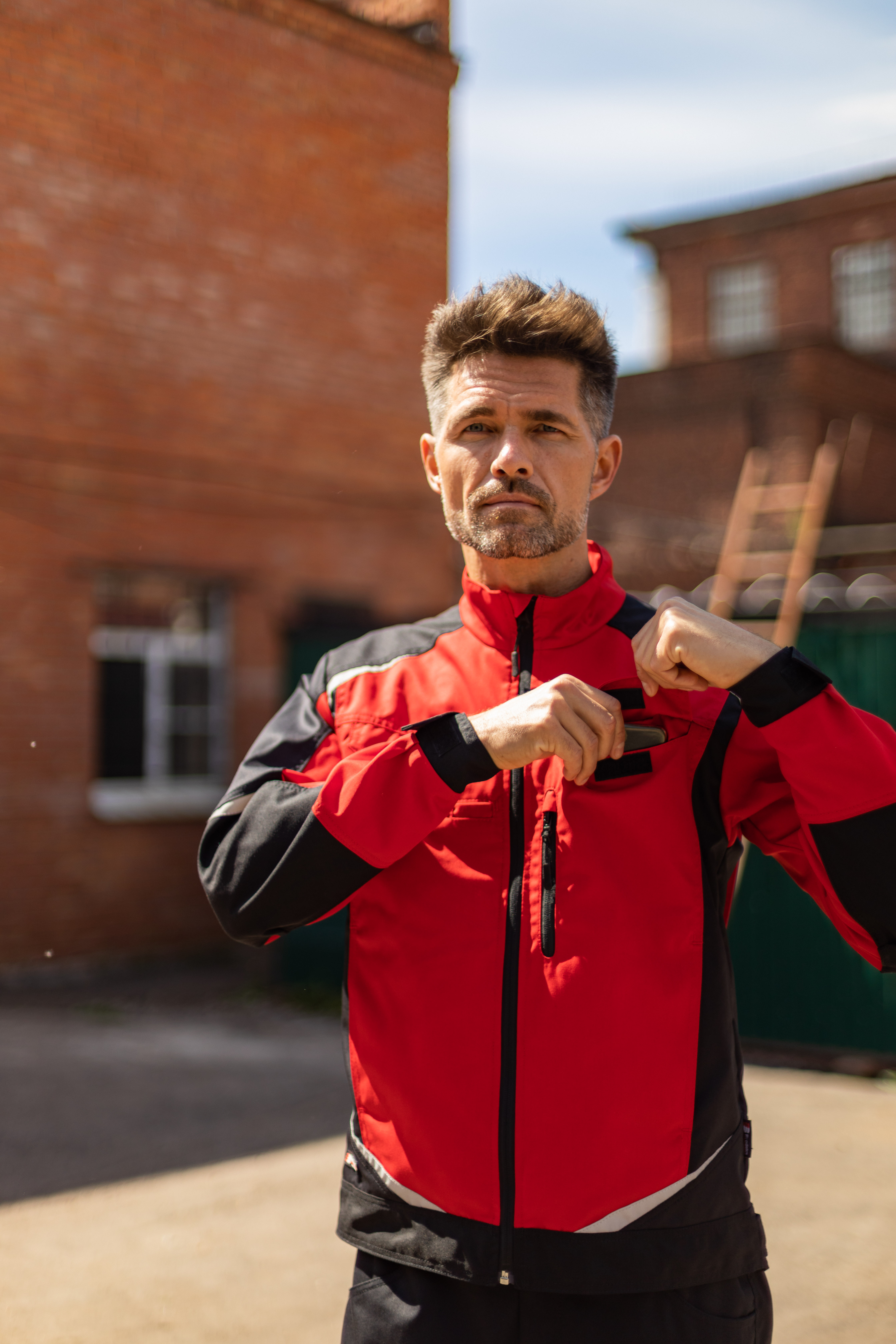 Материал верха: Workshell 35% хлопок, 65% полиэфир, плотность 245 г/м2 Усиления (локти, манжеты, низ): Forcedura (100% полиамид)