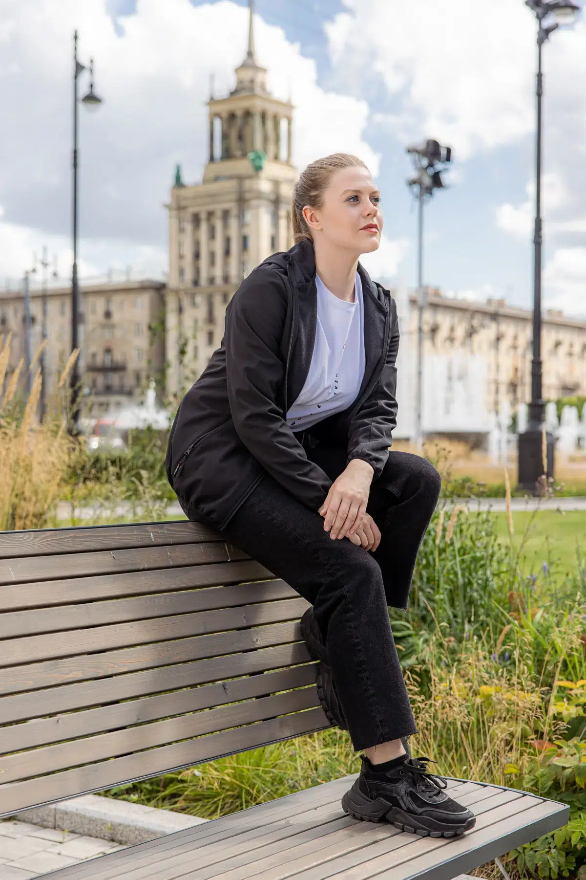 софтшелл (92% полиэстер, 8% спандекс) + DWR-пропитка, плотность 310 г/м2 Водонепроницаемость – 10000 мм, паропроницаемость – 5000 г/м²/24 часа