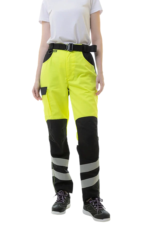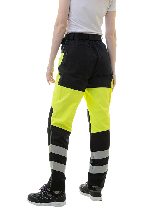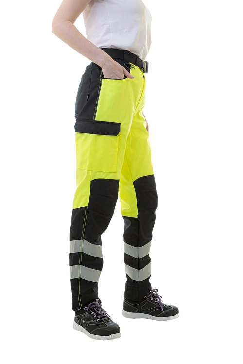 Брюки Brodeks KS 319 также относятся ко 2 классу видимости и предназначены для работы в цехах, на складах и производственных объектах. Прочная смесовая ткань не выцветает, не мнётся и устойчива к истиранию, а анатомический крой колена, резинки по бокам пояса и широкие шлёвки обеспечивают удобную посадку. Модель оснащена 5 карманами, светоотражающими лентами 5 см и запасом длины 5 см.