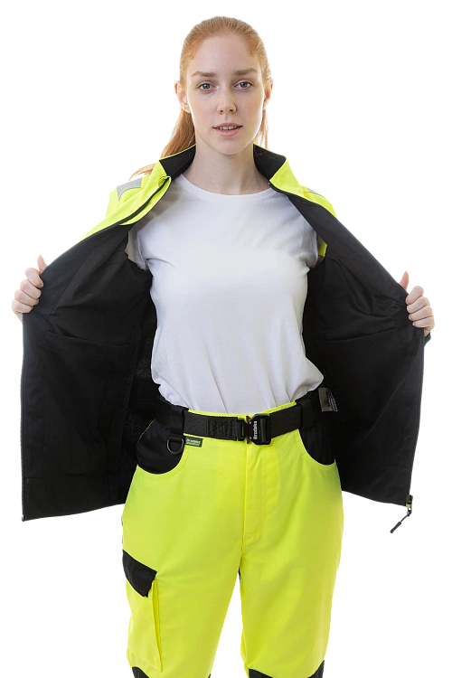 Куртка Brodeks KS 229 выполнена из износостойкой смесовой ткани, которая не мнётся и легко очищается от общепроизводственных загрязнений. Модель соответствует 2 классу видимости, имеет эргономичный крой, регулируемые низ и манжеты, а также 5 карманов, включая нагрудный на молнии и два внутренних. Светоотражающие ленты шириной 5 см обеспечивают хорошую заметность при работе.